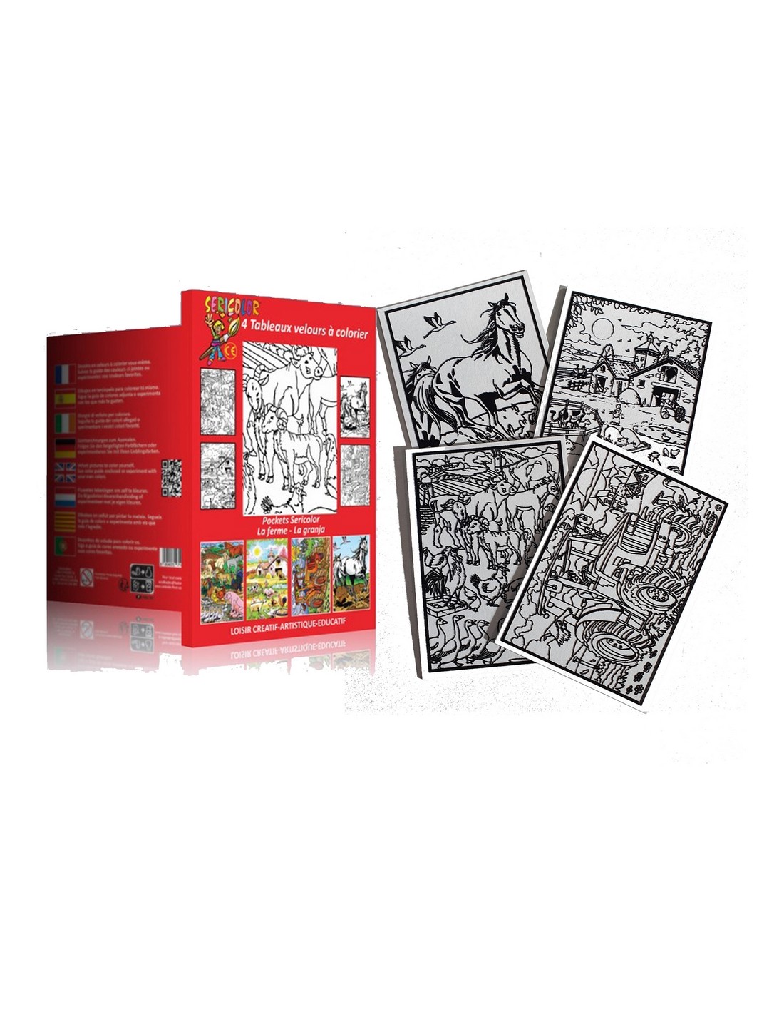 Le pocket des animaux de la ferme. Tableau à colorier Sericolor® avec contours relief en velours